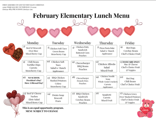 Elementary Lunch Menu